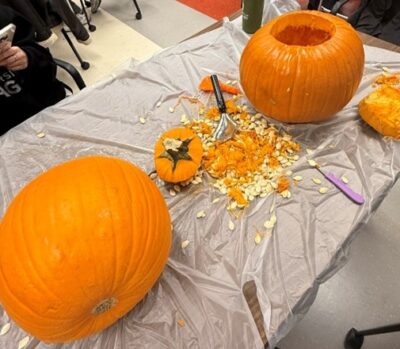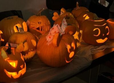 10月後半になると、どの家もハロウィンの装飾で彩られ、家の近所が楽しい雰囲気になります。私たちは初めてパンプキンカービングに挑戦し、それぞれ個性豊かなランタンを作りました。ハロウィン当日は、街や学校、バスで仮装した人を多く見かけました。仮装して授業をしている先生、授業を受けている生徒が居たり、授業中にキャンディーが配られたり、自由で楽しい雰囲気に、日本との違いを感じました。夜には、子どもたちが近所を回って「Trick or Treat!」と言いながらキャンディーをもらいに行きます。私たちも一緒に参加しました。どの家の方も笑顔で「Happy Halloween!」と声をかけてくれて、とても楽しい夜を過ごすことができました。