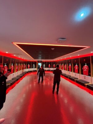 2日目はマンチェスターにあるフットボール博物館とオールドトラッフォードのスタジアムツアーに参加しました。スタジアムツアーでは普段観客が入ることのできない部分まで案内してくれて非常に面白かったです。