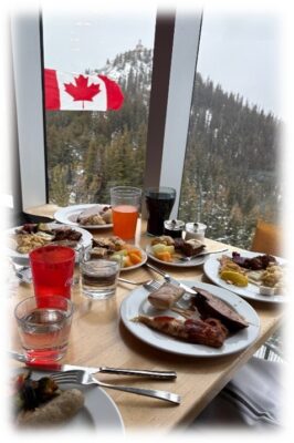 寒く雪が降る中でLake Louiseを訪れました。途中で事故によりバスが約1時間半止まるというハプニングもありました。お昼はゴンドラで山頂へ行き、ビュッフェ形式のランチを楽しみました。最後はBanffのタウンサイトを散策しました。