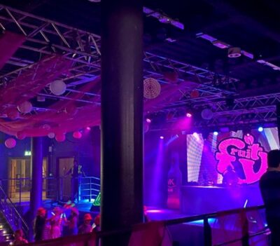 Fruity!Pink Party!はリーズ大学主催の学生だけのナイトクラブイベントです。ピンクやネオンがテーマのリーズ大学でも人気のポップでカラフルなクラブです。気分が上がる音楽とドリンクを楽しみながらパーティーに参加することができます。実際に行ってとても楽しかったです。月~金まで大学で勉強して金曜日の夜のご褒美のような感覚で思いっきり楽しむ人が多く、勉強も遊びも全力に取り組むような姿勢に驚きました。日本の大学ではありえないようなイベントでいい経験になりました。大学主催のナイトクラブなので気軽に楽しめるし、海外のクラブを経験したいという人にはおすすめです。入場料が6ポンドでドリンクも一杯5ポンドと少し高いですがとても楽しいイベントでした!