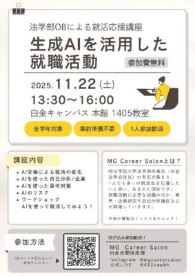 白金法学会では、法学部生を対象にした『就活応援講座』を開催します。