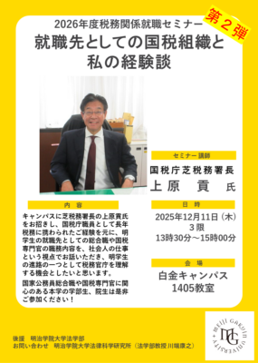 「2026年度 税務関係就職セミナー第2弾 就職先としての国税組織と私の経験談」
