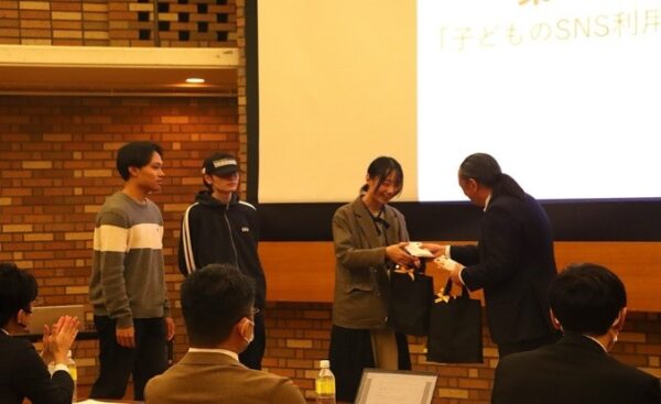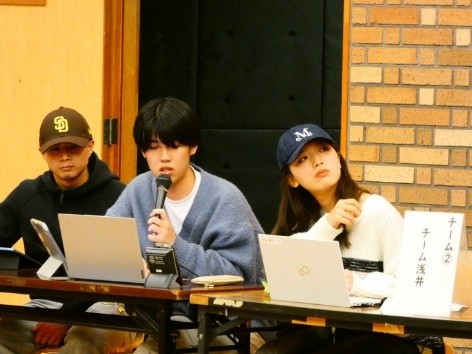 審査の結果、優勝(第一席)は今尾ゼミのチームギャルのみなさん(篠塚丈さん・出川ゆずさん・中尾心海さん)、第二席は黒田ゼミのチームSUNNYのみなさん(樋口あさひさん・澤内美那さん・佐藤優希さん)、第三席は今尾ゼミのチーム浅井のみなさん(小野隼司さん・石井美羽さん・木村真也さん)となりました。